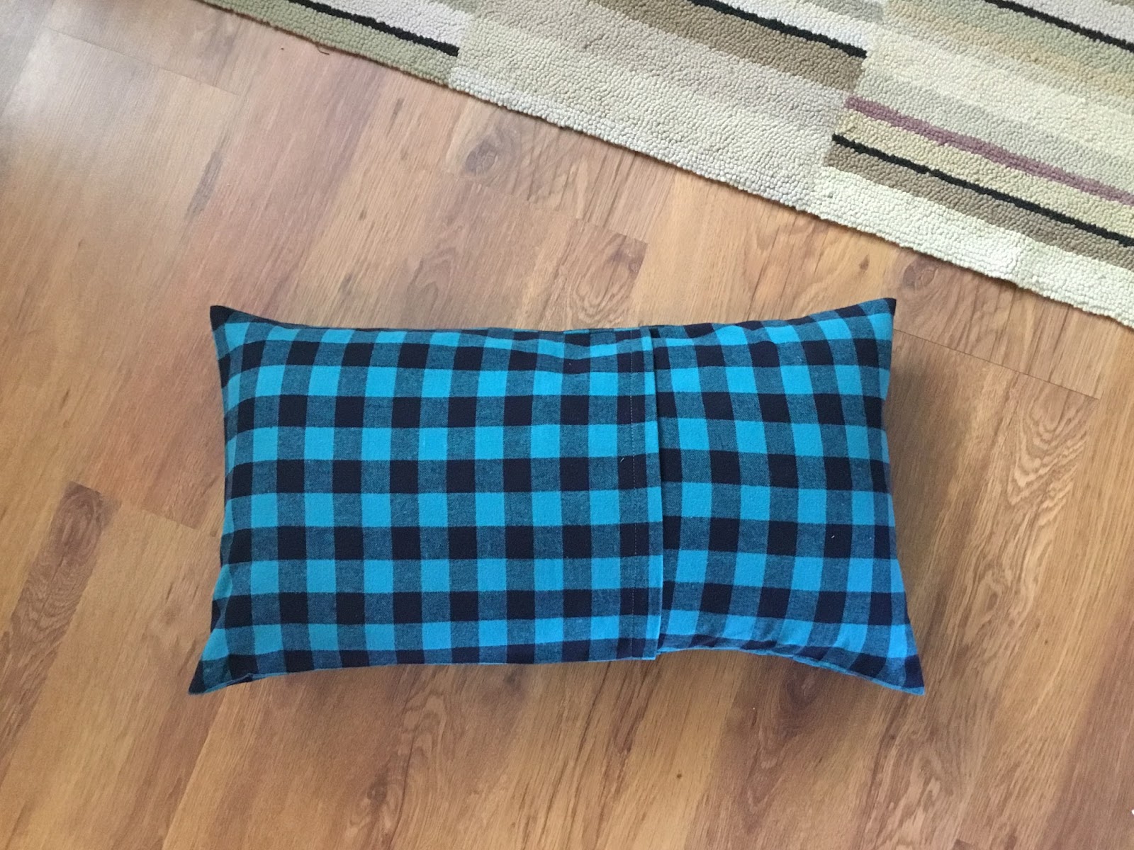 First things first, you are going to need fabric. I just eyeballed it and grabbed a yard of this gorgeous teal flannel buffalo check. If you want to be sure, measure your cushon sizes first. I knew from making the cushion cover for my Front Entry Reno that I was definitely good with one yard for 2 of these covers.